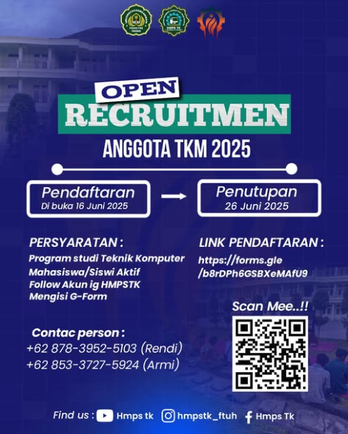 Yups, benar sekali open rekrutmen partisipan "Teknik komputer mengabdi (TKM) 2025" hmps teknik komputer universitas hamzanwadi.